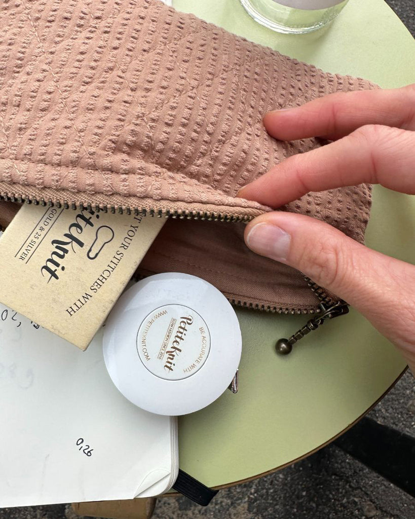 Knitter's Tool Purse aus gesteppter Baumwolle mit Platz für alle Deine Strickutensilien.