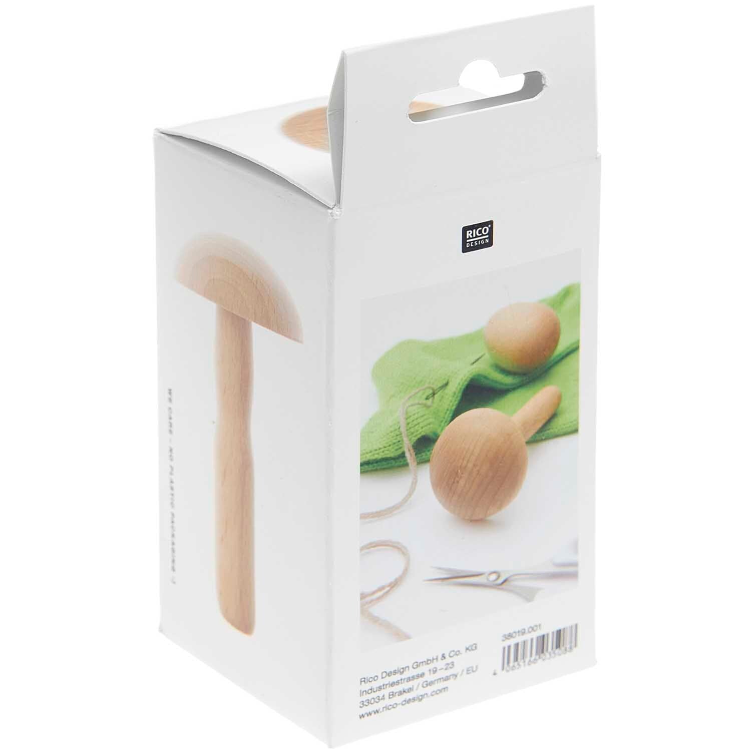 Zum Thema Nachhaltigkeit und Umweltbewusstsein gehört auch das Flicken von kaputten Kleidungsstücken. Das Set aus Stopfpilz und Stopfei ist aus Holz und wird in einer plastikfreien Verpackung verkauft.